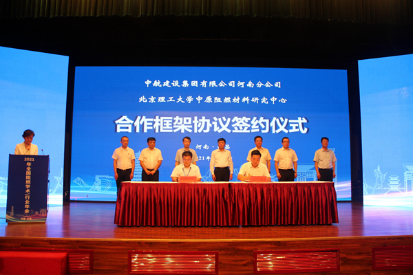 6月28日上午,中航建设集团有限公司河南分公司与北京理工大学中原阻燃材料研究中心在河南省许昌市魏都区高新技术产业园举行合作框架协议签订仪式。仪式由许昌市政府副市长赵淑红主持,许昌市市长史根治,中国质量认证中心主任谢肇煦,许昌市政协副主席、许昌学院副院长郑直,北京理工大学合作与发展部部长邹美帅,许昌市政府秘书长白洪超,许昌市魏都区委书记李朝锋,北京理工大学材料学院副院长马壮出席仪式。中航建设集团有限公司河南分公司总经理黄辰和河南爱彼爱和新材料有限公司总经理张光明代表双方签字。